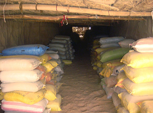 阿富汗方面繳獲的大量毒品堆放在一個臨時倉庫中。