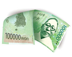 韓國政府原計(jì)劃于明年年初發(fā)行的10萬韓元面值的紙幣。