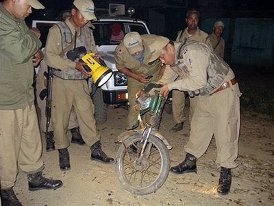 印度軍方正在檢查藏匿炸彈的踏板車(chē)殘骸