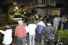 一名前厚生事務次官的妻子被刺事件發生后,現場周圍一片混亂。(共同社)
