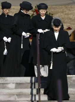 根據日本皇室的慣例,天皇逝世后的重大年份由天皇親自赴皇陵祭拜,其他年份則派使者前去。
