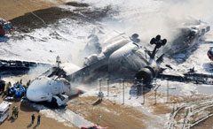 據NHK拍攝的現場畫面,貨機在A跑道著陸后機頭撞擊到地面并再度彈起,之后左翼觸地導致機身劇烈旋轉偏離跑道,機身中央部分隨即起火。