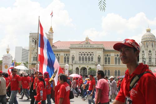 中新網3月26日電 泰國反政府的紅衫軍26日號召約3萬支持者聚集曼谷示威,從皇家田廣場游行至總理府,下午展開包圍行動,并揚言這次示威至少持續(xù)一個月。
