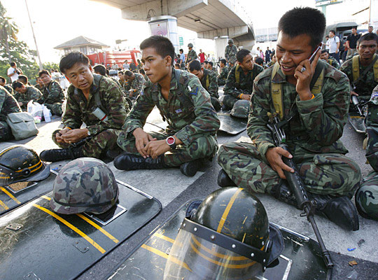 當地時間中午12時半,泰國警察總局官員和“紅衫軍”主要領導人在總理府前進行談判,隨后“紅衫軍”領導人通過擴音喇叭通知集會在總理府附近的示威者解散集會回家。示威者今天將通過曼谷四個車站分乘大巴返回北部、東北部等地。