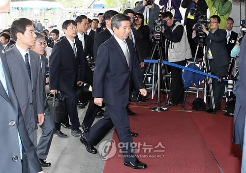 盧武鉉抵達檢察廳 檢方開始進行調查(韓聯社)