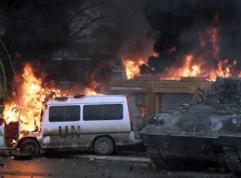 一些民眾強行進入位于米特羅維察北部的聯(lián)合國地區(qū)法院,降下了懸掛在法院建筑上的聯(lián)合國旗幟,升起了塞爾維亞國旗。