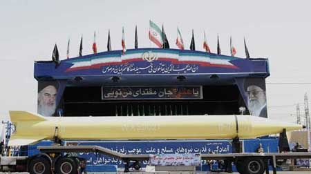 伊朗“流星-3”導(dǎo)彈今年九月二十一日在德黑蘭參加閱兵式。