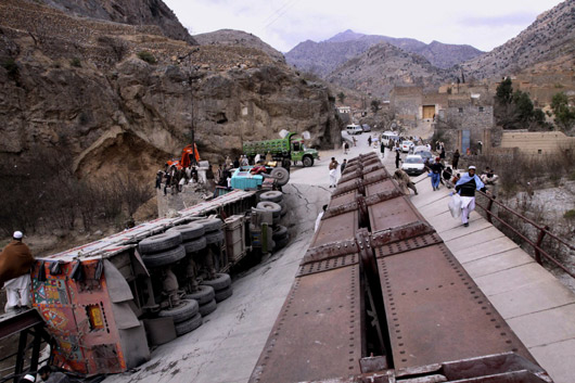 隨著美國計劃派遣3萬名士兵進入阿富汗,通過巴基斯坦的補給線成為五角大樓最重要的課題之一。有75%的補給物資由巴基斯坦進入阿富汗。這些物資首先通過海運抵達巴基斯坦南部港口卡拉齊,然后沿著公路北上,最終抵達阿首都喀布爾。據(jù)統(tǒng)計,每天有至少300輛卡車經(jīng)卡巴通道出入阿富汗,不過,美軍的武器彈藥不經(jīng)卡巴通道運輸。