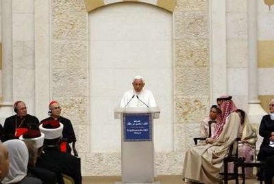 教皇其后到首都安曼最大的清真寺參觀,提到不少宗教紛爭背后受到政治操控,強調(diào)要與伊斯蘭教和諧共處。帶領教皇參觀的約旦王子加齊感謝教皇,就2006年發(fā)表傷害伊斯蘭教言論,表達遺憾。