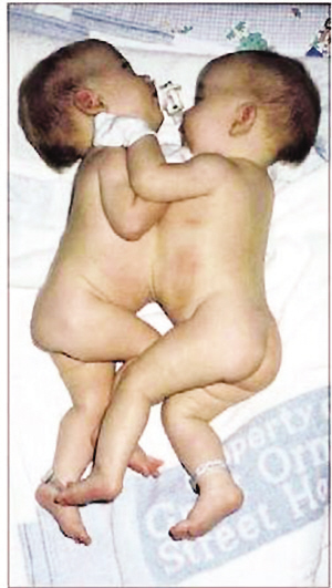 小姐妹出生11周時,發育狀況良好,體重與同齡孩子無異。隨后,她們被送往了倫敦的醫院,接受手術。愛法率先被推了出來。半個小時后,尼芙也被推了出來。從當時的情況來看,尼芙在分離后皮膚嚴重缺損,身體留下一個巨大的豁口,鼻子里插著輸氧管,奄奄一息。