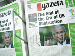 中新網(wǎng)12月13日電 據(jù)日本共同社報道,隨著《氣候變動框架公約》締約國第14次會議在波茲南閉幕,波蘭著名報紙《選舉報》(英文版)12日刊行一份“假號外”,諷刺美國布什政府始終拒絕批準(zhǔn)《京都議定書》。