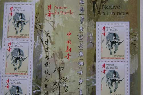 送走令人感慨的鼠年,中國的牛年春節將至。法國郵政局于1月10日在巴黎郵政沙龍舉行了中國牛年生肖郵票發行儀式。目的在于與廣大旅法華人華僑共同分享中國傳統的春節歡樂。