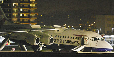 英國航空一架由荷蘭阿姆斯特丹飛抵倫敦的客機,降落時前輪撞毀脫落,以機肚在跑道上滑行至靜止,機上71人全部以緊急滑梯疏散,僅4人受輕傷,其中一人送院治理。出事客機是Avro 146 RJ100型號飛機,航班騙號BA8456,載有67名乘客和4名機組人員。航機在前晚8時左右降落,但前輪起落架出現故障,前輪更飛脫。有乘客指,飛機著地時聽到一聲巨響,前輪撞毀后機艙內冒出煙霧,所有人從機尾部分疏散。事發后,當局派出6輛救護車、10輛消防車和多輛警車將飛機團團圍住,幸未起火。事后當局關閉該機場唯一跑道,11班航班被轉往英格蘭東南部其它機場升降。