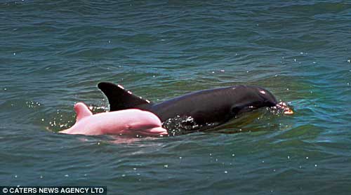 有生物學(xué)家稱,這只粉紅色的海豚應(yīng)該是白化病“患者”。而它也可能是世界上唯一一只粉紅色的寬吻海豚。