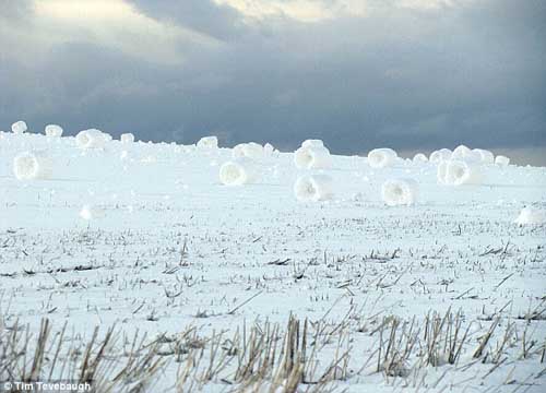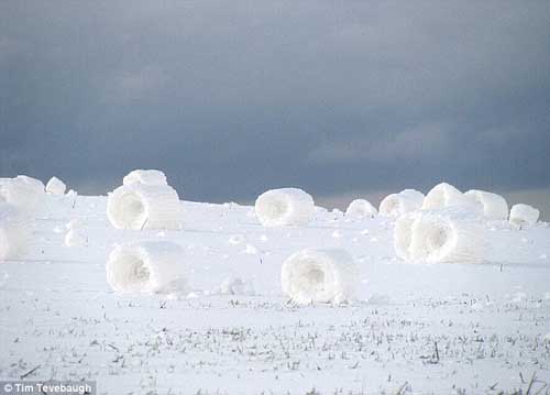 長的極像白色干草卷的雪卷最高能達2英尺,這些被風吹卷起的雪堆,通常是圓柱形,兩頭是凹面。