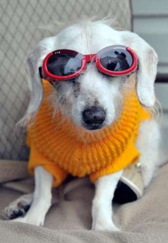 世界最長壽狗慶21歲生日 有白內障戴太陽鏡(圖)