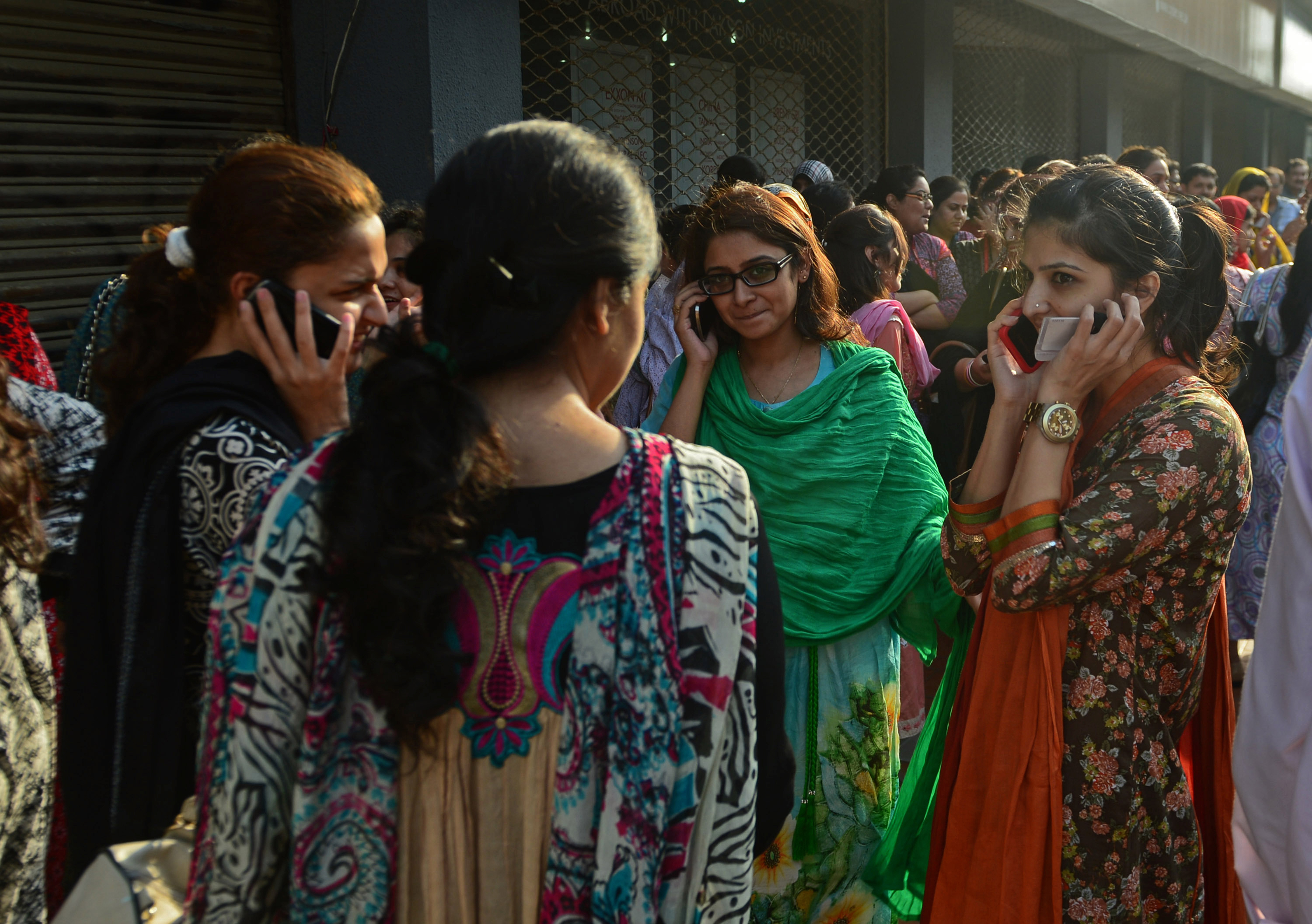 巴基斯坦發(fā)生7.8級(jí)地震 街頭民眾“電話報(bào)平安”