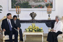 3月19日上午,被廢黜的柬埔寨國家元首西哈努克抵京時,周恩來總理、葉劍英、李先念等國家領導人和友好國家的46位駐華大使到機場迎接。當客人走下飛機,周總理迎上前去緊緊握著西哈努克的手說:我們已經知道柬埔寨國內發生政變的情況,請您放心,您永遠是柬埔寨國家元首,我們永遠承認您。親王在機場受到來訪的國家元首的最高禮遇。