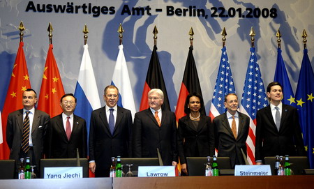 中新網(wǎng)1月23日電 據(jù)中國外交部網(wǎng)站消息,1月22日,中國、美國、俄羅斯、英國、法國、德國六國外長會議在柏林舉行。中國外交部長楊潔篪出席。會議就伊朗核問題安理會決議草案要素交換了意見,并就下一步總體方略進行了有益的討論。與會各方同意繼續(xù)就此保持密切溝通與磋商。