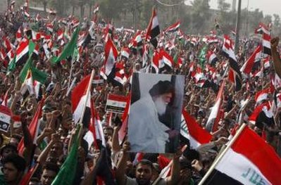 示威者響應(yīng)什葉派政治人物薩德爾的號召,一大早在巴格達(dá)東部薩德爾城的穆扎法爾廣場聚集。大部分示威者是年輕人,也有一些婦女和兒童。他們揮舞著伊拉克國旗,手舉薩德爾畫像,高喊“侵略者滾出去!我們不要駐軍地位協(xié)議!”等口號,一直游行到約3公里外的穆斯坦西里亞廣場。