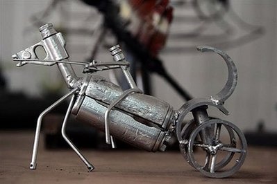 中新網(wǎng)4月10日電 據(jù)法新社9日報(bào)道,伊拉克巴格達(dá)舉行的戰(zhàn)爭藝術(shù)展引人注目,隨著戰(zhàn)火的逐漸消退,藝術(shù)愛好者們收集起戰(zhàn)火中槍支炮彈的碎片,極富創(chuàng)意的利用它們組成了一件件象征希望的藝術(shù)品。