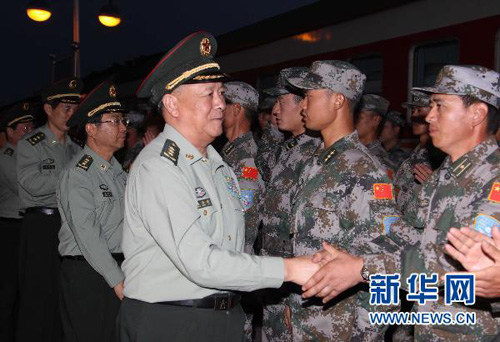 參加“和平使命-2010”上海合作組織成員國武裝力量聯合反恐軍事演習的中方陸軍戰斗群第一梯隊正乘坐軍列一路西行,前往位于哈薩克斯坦南部的演習地域。