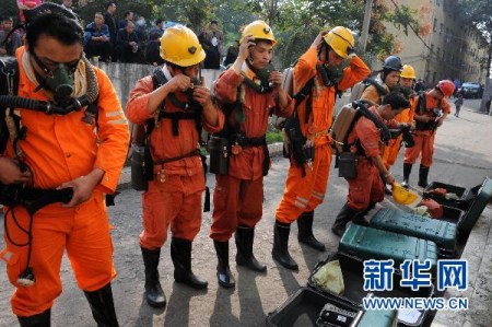 河南平禹煤電有限公司四礦并不寬敞的院子里,密密麻麻地停放著近百輛警車、救護(hù)車、救援車。30多名救護(hù)人員在井口整裝待命,隨時(shí)準(zhǔn)備替換井下正在超負(fù)荷工作的礦山救護(hù)隊(duì)員。他們6點(diǎn)多鐘就沖向事故現(xiàn)場(chǎng),至今仍在全力搜尋17名生死不明的礦工。