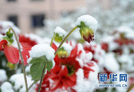 16日凌晨3時(shí)左右,黑龍江省大慶市及其周邊市縣開(kāi)始降雪,至5時(shí)左右,大雪飛揚(yáng),車(chē)上、房頂和部分路段已積起了一層雪。由于近期大慶市氣溫并不低,樹(shù)葉都是綠色,突然降下的白雪蓋在綠樹(shù)上,顯得格外漂亮。
