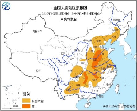 中新網10月22日電 據中央氣象臺消息,中央氣象臺10月22日06時繼續發布大霧藍色預警: