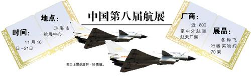 本報珠海訊 (記者 陳治家 李妍)中國第八屆航展將于本月16日~21日在珠海市航展中心隆重舉行。昨日第八屆航展推介會在廣州舉行,會上記者獲悉,中國空軍“八一”飛行表演隊將首次駕駛最新涂裝的“殲-10”戰鷹翱翔藍天,另外巴基斯坦空軍“雄獅”特技飛行表演隊、美國“紅鷹”特技飛行表演隊也將首次參展,多支中外全新特技飛行表演隊首次在中國航展上同臺競技將成為本屆航展的一大亮點;另外,往屆航展多次以模型亮相的梟龍戰機首次以真身亮相,中國商用飛機有限責任公司也將派出我國自行研制的ARJ21新型支線客機參展,并進行性能展示飛行。
