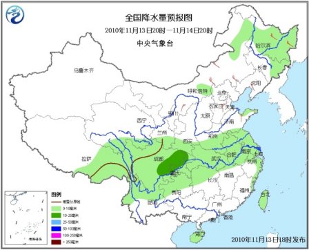 13日20時至14日20時,西藏中東部、青海南部、甘肅西南部、川西高原北部、內蒙古中部和東部、黑龍江大部、吉林東部、山東東北部等地有小到中雪(雨)或雨夾雪;四川、重慶、云南北部、貴州中北部、甘肅南部、陜西南部、黃淮、江漢、江淮、江南中北部、浙江北部及東部沿海地區、福建沿海地區、海南以及臺灣等地有小到中雨或陣雨。甘肅、內蒙古大部、華北、東北、黃淮、江淮、江南中北部等地有4~6級偏北風。黃海中部和南部海域、東海北部海域將有5~7級東北風;東海南部海域、臺灣海峽、臺灣以南海域和以東洋面、南海東北部海域將有6~7級、陣風8級的東北風;南海西北部和中部海域、北部灣海域將有5~6級東北風;南海西南部海域將有5~7級旋轉風。