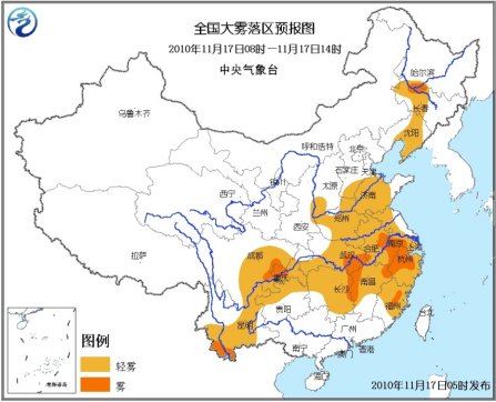 今天早晨到上午,遼寧中部和南部、吉林中西部、河北南部、黃淮、江淮、江漢東部、江南大部、西南地區東部、云南東部和南部等地有輕霧,其中,吉林西北部、江蘇西南部、安徽東南部、浙江北部、湖北東部、江西西部和東北部、福建中部、四川東部、重慶西部、云南南部等地的部分地區有能見度不足1000米的霧,局部地區能見度不足500米。