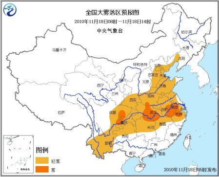 18日早晨到上午,遼寧中部、華北平原、陜西中南部、黃淮、江淮、江漢、江南北部、西南地區大部有輕霧,其中,江蘇西南部、安徽中南部、浙江北部、湖北中東部、湖南東北部、四川東部、重慶西南部等地的部分地區有能見度不足1000米的霧,局部地區能見度不足500米。