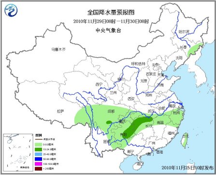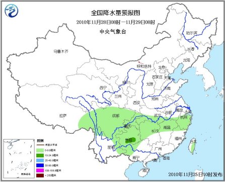 28-30日,江南中北部、華南西北部及西南地區東部有小到中雨過程。