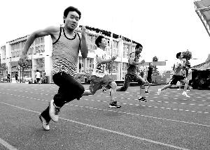 5月8日,蘆山中學(xué)高二體育特長生在進(jìn)行變速跑訓(xùn)練。蘆山人災(zāi)后讓夢再起飛 。新華社發(fā)