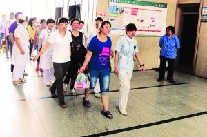 昨日,13時33分,該院燒傷外科診室的大門被打開,部分傷情較輕的患者在醫務人員的攙扶下來到患者專用電梯前,準備逐一進行轉院工作。