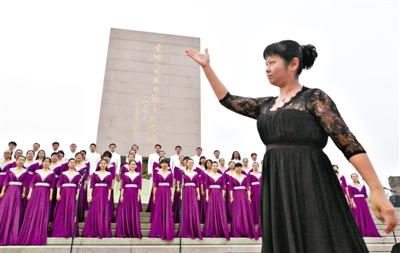 為紀(jì)念全民族抗戰(zhàn)爆發(fā)77周年,昨天下午六點,由北京市委宣傳部主辦,豐臺區(qū)委、豐臺區(qū)政府承辦的“勿忘國恥,圓夢中華”首都各界群眾歌詠活動在中國人民抗日戰(zhàn)爭紀(jì)念雕塑園中心廣場內(nèi)舉行。 新京報記者 李禹潼 薛珺 攝影報道