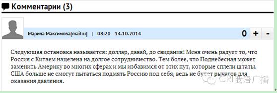 網友馬克西莫娃評論說:“下一步就該和美元說再見了!我非常高興地看到,俄羅斯與中國致力于長期合作。中國將在眾多領域取代美國,我們將擺脫美國的羈絆。美利堅再也不可能把我們踩在腳下了,因為向我們施壓的工具已經失效。”