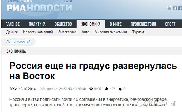 普京下令組建的“今日俄羅斯”國際新聞通訊社:對李總理訪問俄羅斯的成果進行了全面梳理與介紹,其中說道,“中俄簽署了將近40項合作協議,涉及能源、金融、交通、航空航天等多個領域,這顯示出,中俄合作又向前跨一大步,俄羅斯向東再轉一度”。