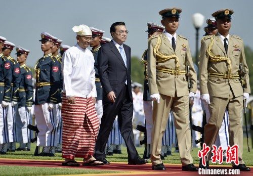 中新網內比都11月14日電 (記者 郭金超)緬甸總統吳登盛14日在內比都總統府前廣場舉行隆重儀式,歡迎中國國務院總理李克強對緬甸進行正式訪問。這是李克強就任總理以來首次訪問緬甸。