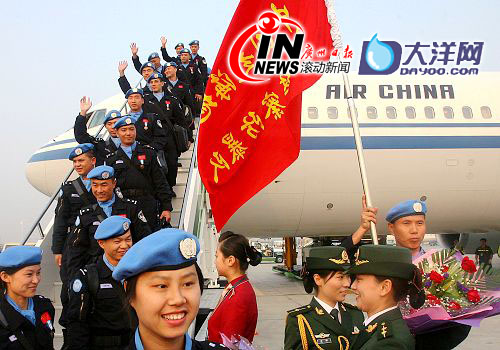 15日上午八時,在廣州白云國際機場,由廣東公安邊防總隊獨立組建的中國第五支赴海地維和警察防暴隊大部隊一行95名隊員,在出色完成了聯合國海地任務區8個月的維和任務之后乘包機回到廣州。公安部在廣州白云機場為防暴隊舉行隆重的歡迎儀式,熱烈歡迎隊員們圓滿完成維和任務并平安返回祖國,先遣隊一行30名隊員已于12月5日回國。