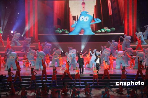 中新社上海十二月十八日電 (記者 許曉青)十八日晚間八時許,備受海內外矚目的中國二0一0年上海世博會吉祥物在此間上海大舞臺揭開神秘面紗。一個返璞歸真的、漢字“人”的藍色卡通造型——吉祥物“海寶”橫空出世。