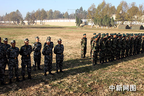 在云南明媚的陽光下,中印兩軍參訓(xùn)部隊(duì)在訓(xùn)練場(chǎng)整齊列隊(duì)。雖然兩國(guó)軍人之間還有一步之隔,但指揮員卻是聯(lián)合指揮所印方指揮官阿比謝·庫馬爾少校。他大聲地下達(dá)“Attention(立正)”口令后,印軍官兵馬上高抬右腳重重跺在地上,立正站好。而中方官兵由于對(duì)其口音不熟悉,個(gè)別人還要有個(gè)在心里翻譯的過程,動(dòng)作略有遲緩。見此情景,聯(lián)合指揮所中方指揮官耿紹波少校馬上就隊(duì)列口令與庫馬爾少校進(jìn)行了交流。五六分鐘后,中方官兵就熟悉了庫馬爾少校的口令,兩軍動(dòng)作步調(diào)便一致起來,中印軍隊(duì)兩位少校也互相豎起了大拇指。