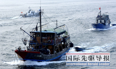 中國漁民們只得紛紛趴在船板上躲避槍擊,追趕被迫停止。