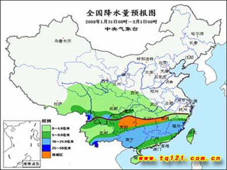 中新網1月31日電 據中央氣象臺預報,31日起,中國南方大部自西向東將有一次明顯雨雪天氣過程。江南南部、華南北部的部分地區有大雨,局部地區有暴雨;西藏東南部、川西高原南部、云南西北部和東北部、貴州北部、湖北南部、湖南中北部、江西北部、浙江中北部、蘇皖南部等地的部分地區有大雪,局地有暴雪;貴州大部、湖南中南部、江西中部等地的部分地區有凍雨。