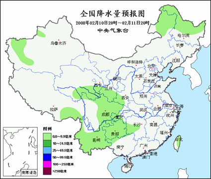 10日20時(shí)至11日20時(shí),新疆天山西部和南疆西南部、西藏東南部、青海東南部、西北地區(qū)東南部、川西高原北部、云南東北部以及內(nèi)蒙古東北部、黑龍江中北部等地陰有小到中雪或雨夾雪,其中,西藏東南部、青海東南部、甘肅西南部等地的局部地區(qū)有中到大雪;四川盆地大部、重慶西南部、貴州、云南中南部、湖南西部以及臺(tái)灣東北部等地陰有小雨或雨夾雪,其中,貴州中西部的部分地區(qū)有凍雨。內(nèi)蒙古中東部、華北大部、東北、黃淮東部等地有4~6級(jí)偏北或偏西風(fēng);東部和南部海區(qū)將有6~8級(jí)偏北風(fēng)。