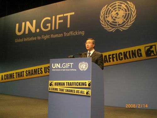他指出,中國政府高度重視打擊人口販運國際合作。他說,中國是《聯合國打擊跨國有組織犯罪公約》締約國,切實履行公約義務,并積極參與聯合國框架下打擊人口販運國際合作。《聯合國機構間湄公河次區域合作反對拐賣人口項目》是區域合作解決國際人口販運犯罪問題的典范。2004年,中國、越南、泰國、緬甸、老撾、柬埔寨六國政府簽署了《湄公河次區域合作反對拐賣人口諒解備忘錄》。三年來,六國政府信守承諾,大力加強預防拐賣、保護救助受害人工作,嚴厲打擊各種拐賣犯罪行為,使得眾多拐賣犯罪受害人和潛在受害者從中受益。2007年底,湄公河次區域反拐第二屆部長級磋商會在中國北京成功召開,會議通過第二階段《湄公河次區域反拐行動計劃》及《聯合宣言》等一系列重要指導性文件,對進一步落實《諒解備忘錄》、促進本區域合作打擊人口販運犯罪工作將產生深遠影響。