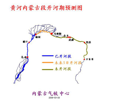 根據(jù)未來5天黃河內(nèi)蒙古段沿線天氣預(yù)報,3月20日—21日氣溫略有回升, 3月22日 —23日,將有一次大風(fēng)、沙塵及降溫天氣過程,氣溫下降6~8℃。受氣溫變化的影響,未來5天巴彥淖爾市臨河至烏拉特前旗段將逐步開河。