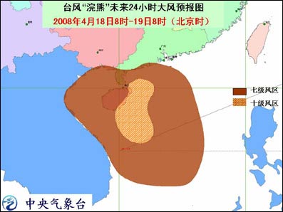 中新網(wǎng)4月18日電 據(jù)問(wèn)天網(wǎng)消息,中央氣象臺(tái)今天早晨六點(diǎn)鐘發(fā)布臺(tái)風(fēng)橙色緊急警報(bào):今年第1號(hào)臺(tái)風(fēng)浣熊(NEOGURI)的中心今天早晨5點(diǎn)鐘位于海南省萬(wàn)寧市東南偏南方向大約180公里的南海中部海面上,就是北緯17.5度,東經(jīng)111.4 度,中心附近最大風(fēng)力有13級(jí)(38米/秒)。