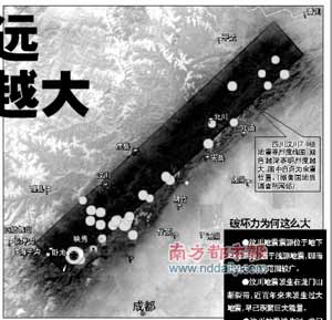 此次汶川地震極具破壞性,目前已造成2萬多人死亡,遇難人數估計在5萬人以上。令人不解的是,截至昨日,距離震中約92公里的成都死亡4100多人,1.4萬人受傷,而距震中140多公里的綿陽、北川死亡9600多人,受傷達5.9萬多人,距震中約101公里的德陽1萬多人遇難、6萬多人受傷。為何距離震中越遠,遭受的損失越大,這到底是什么原因造成的呢?